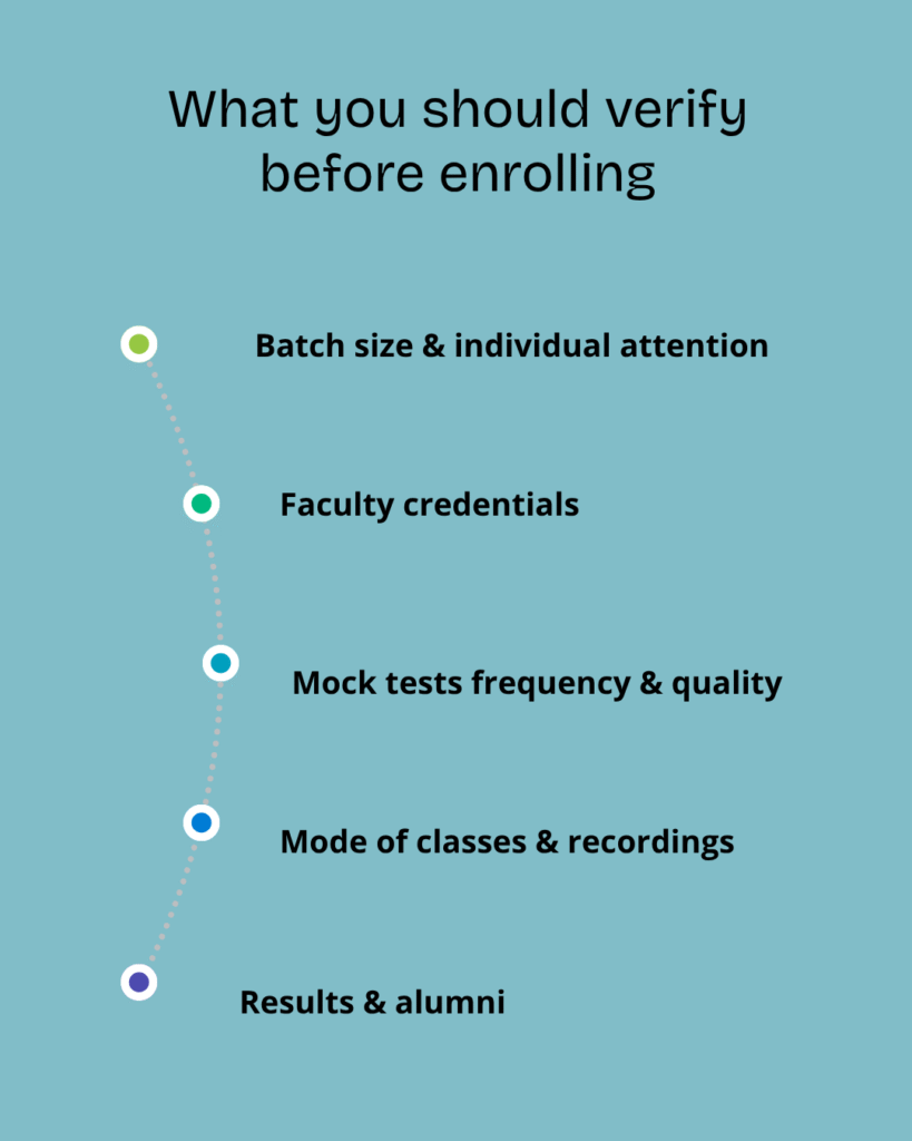 - Demo class and schedule: Ask for a demo class to see teaching style, clarification of your doubts, batch timing.
